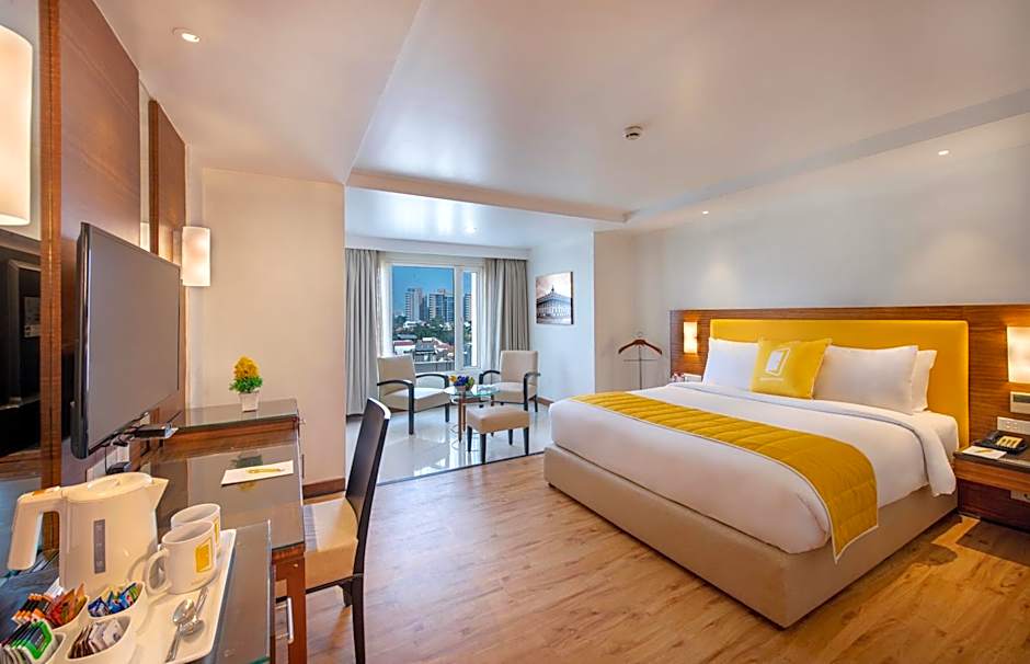 A range of room configurations is offered, including Standard, Deluxe, Superior, and Sea View options, with Twin and King-size bed layouts available in select rooms. The property sits roughly 4.3 מייל from Ahmedabad's city center, providing a practical base for exploring the area while enjoying on-site amenities like Bloom Café and in-room comfort.